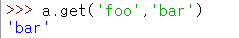 a 딕셔너리에는 'foo'에 해당하는 값이 없다. 따라서 디폴트 값인 'bar'를 돌려준다.