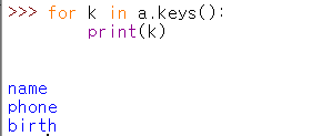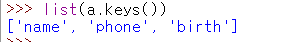 a.keys()는 딕셔너리 a의 Key만을 모아서 dict_keys 객체를 돌려준다.